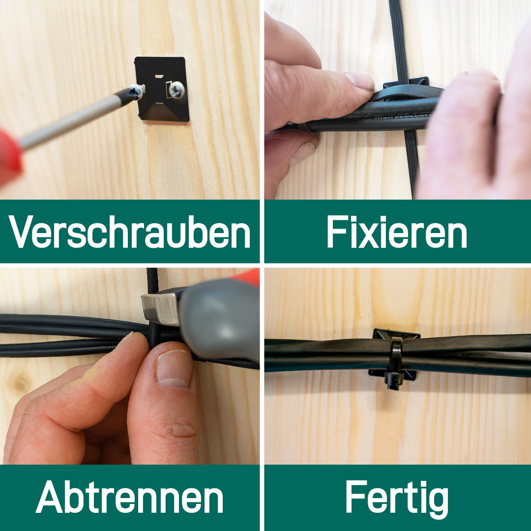 Die Befestigungssockel dienen zur zuverlässigen Führung und Befestigung von Kabeln mittels Kabelbinder.