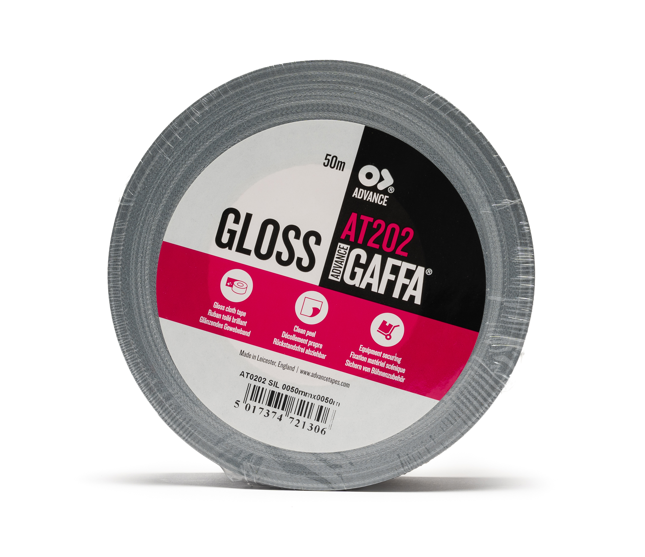 Advance Gaffa AT202 – Glänzendes, extrudiertes Polygewebeband, beschichtet mit einem weißen, aggressiven, druckempfindlichen Naturkautschukkleber, lösemittelfrei.