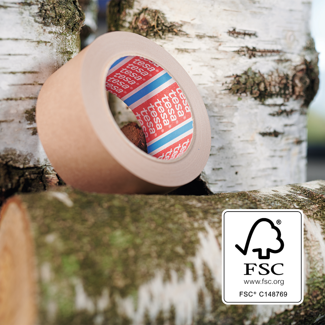 tesa® 4713 ist ein universell einsetzbares Verpackungsklebeband auf Basis eines feinen Krepppapierträgers und einer Naturkautschukklebmasse. Der Träger von tesa® 4713 besteht aus Papier, das aus vorbildlich bewirtschafteten, FSC®-zertifizierten Wäldern und anderen kontrollierten Quellen gewonnen wird.