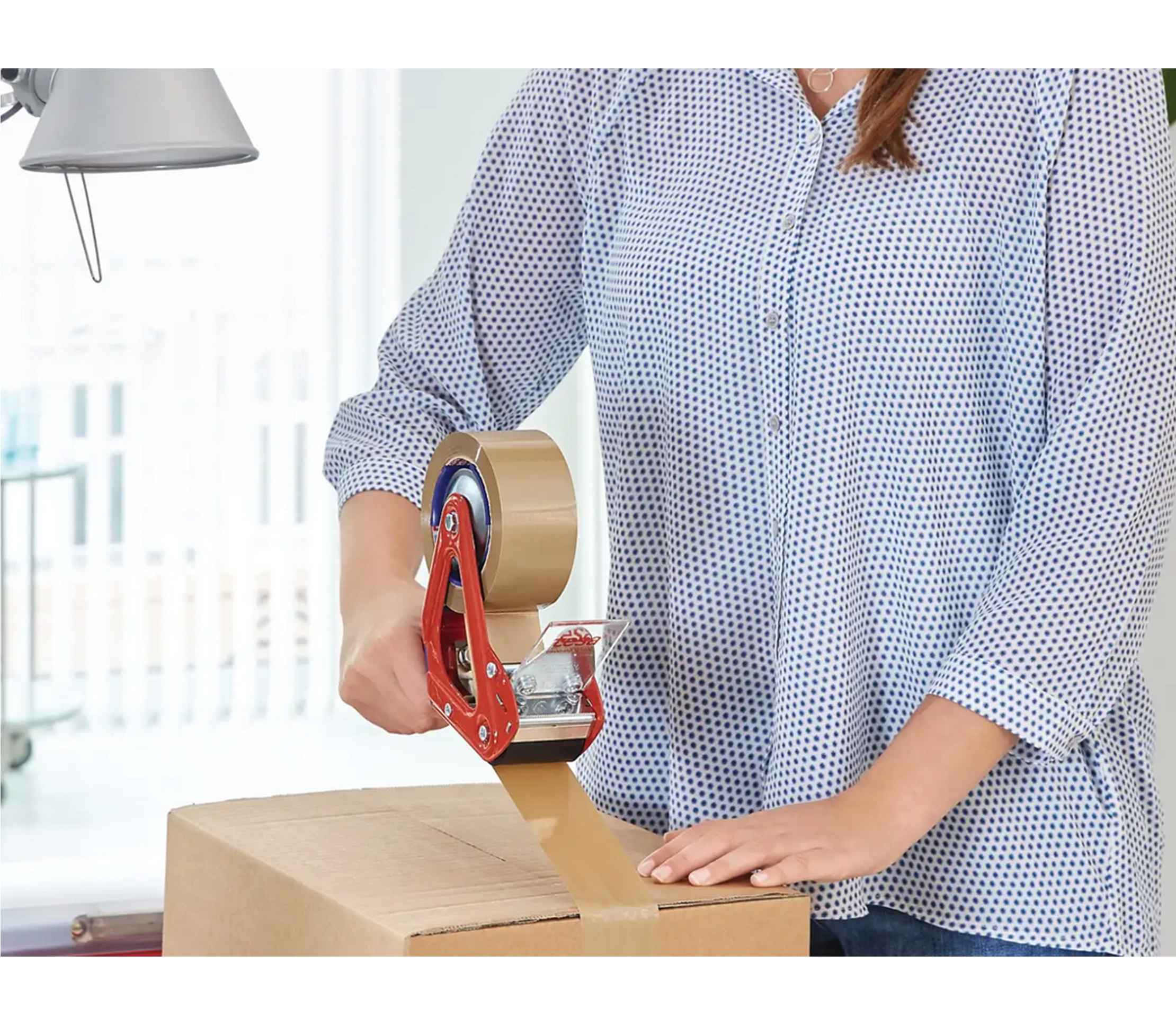 Der tesa® 6400 ist ein robuster und professioneller Handabroller zur Verarbeitung von tesa® Verpackungsklebebändern bis 50 mm Breite und max. Rollendurchmesser von 140 mm.